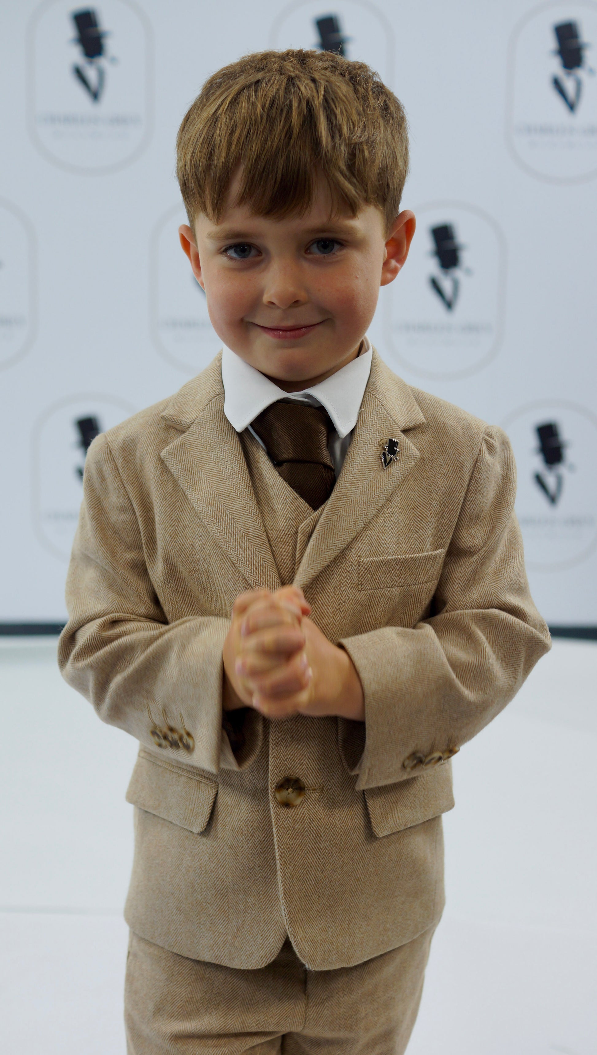 Named after our dear friend Errol, this beautiful sand herringbone tweed suit is perfect for all seasons wedding and races!